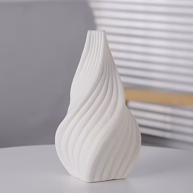 Jarrón moderno minimalista para decoración, el jarrón de cerámica para flores secas o artificiales, con textura acanalada única, aspecto hermoso y elegante. Una gran opción para decoración moderna del hogar, decoración de sala de estar, centros de mesa. (Flores no incluidas), no se le puede agregar agua.