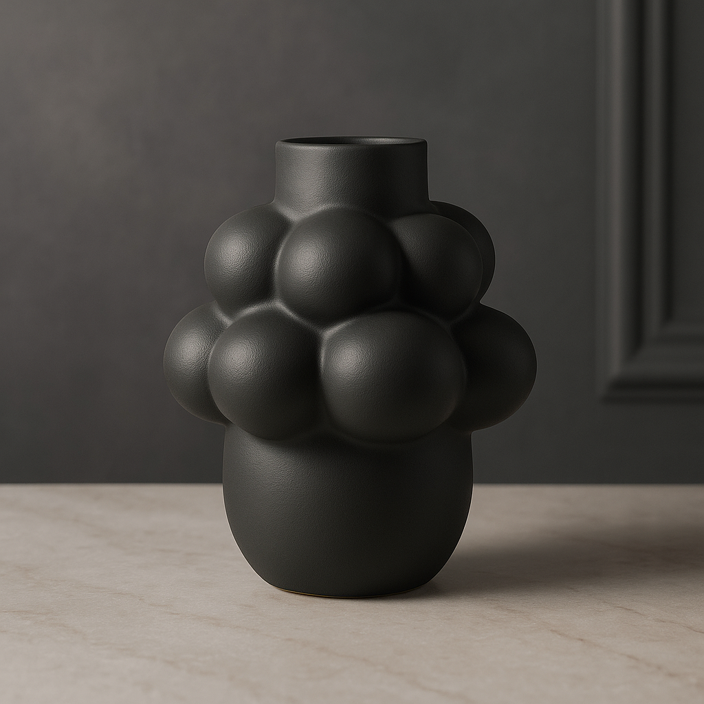 Florero de cerámica negro grisáceo, ideal para lugares con tonalidad clara, destaca cada espacio de tu hogar, no se le puede agregar agua, ideal sol para flores secas o artificiales.