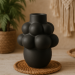 Florero de cerámica negro, ideal para darle un toque elegante, no se le puede aplicar agua solo flores secas o artificiales.