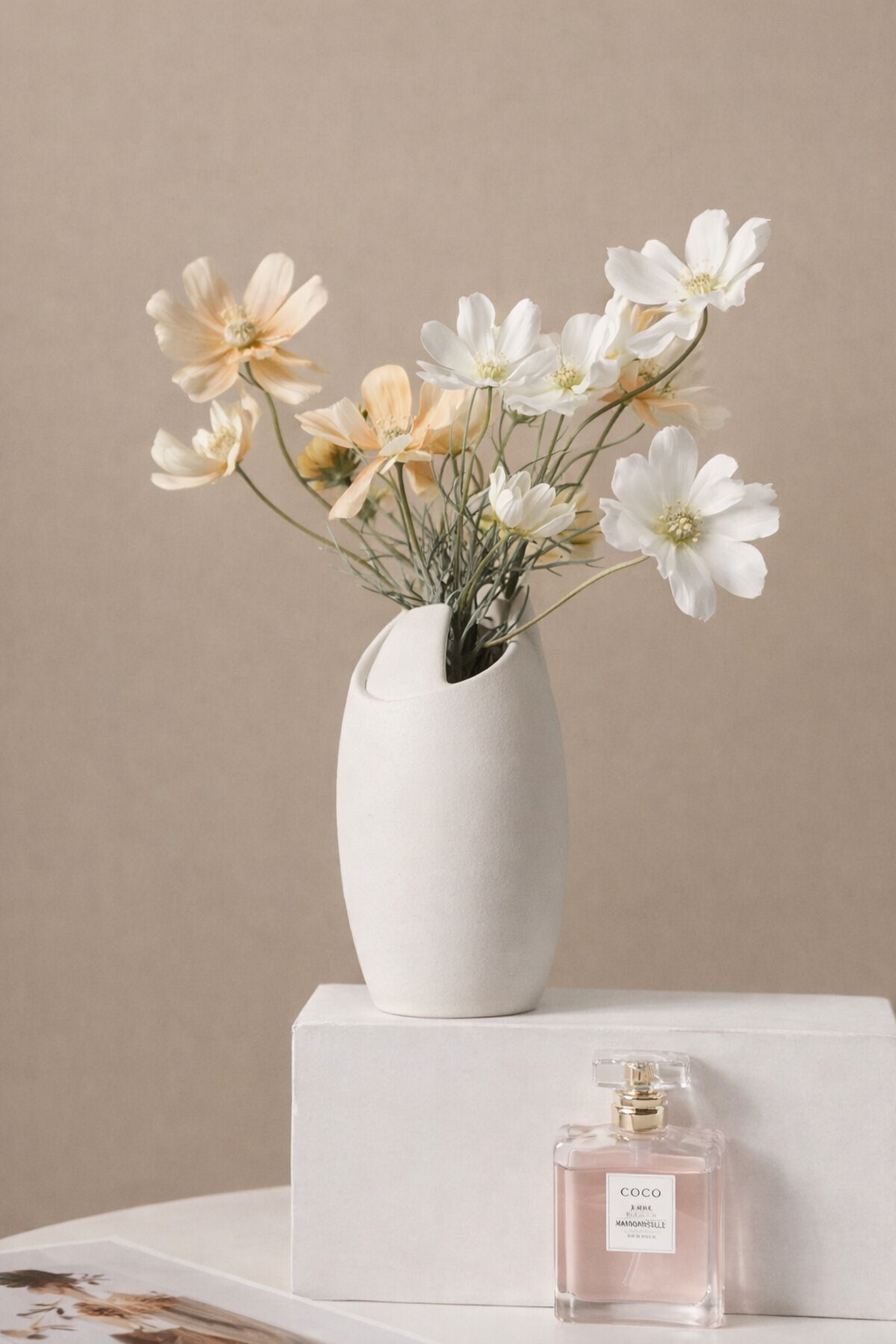 Este diseño tiene una forma redondeada y un estilo moderno, presenta un color blanco vintage con pequeños puntos negros como adorno, lo que hace que todo el conjunto sea clásico y versátil. La boca irregular de la botella hace que el jarrón sea mas distintivo y es muy adecuado para varios estilos de muebles. Es perfecto para varios estilos de hogar, como el estilo nórdico moderno.