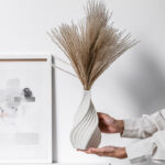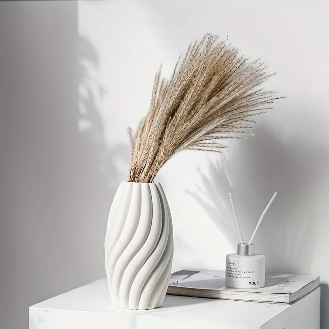 Jarrón moderno minimalista para decoración, el jarrón de cerámica  para flores secas o artificiales, con textura acanalada única, aspecto hermoso y elegante. Una gran opción para decoración moderna del hogar, decoración de sala de estar, centros de mesa. (Flores no incluidas), no se le puede agregar agua.
