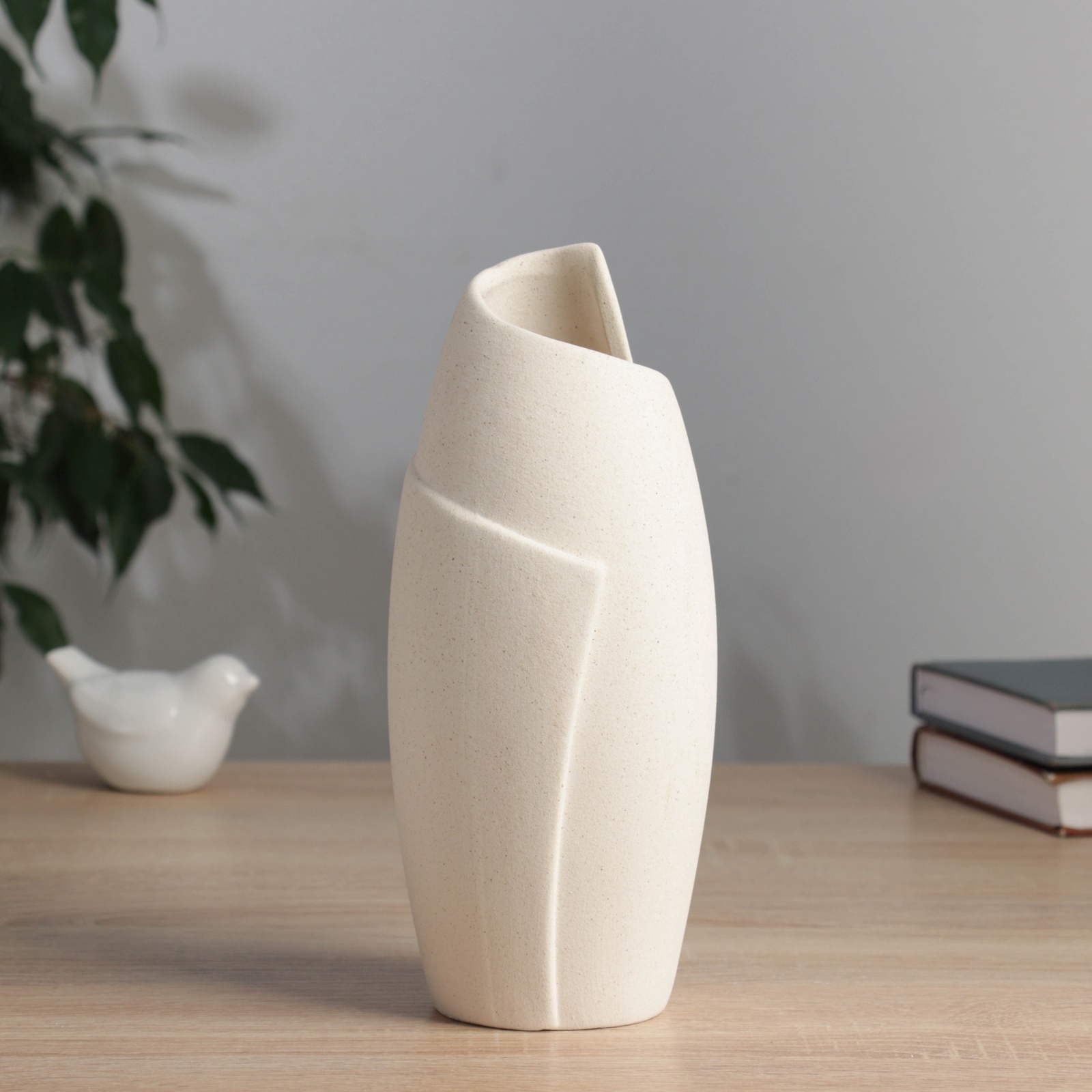 Este diseño tiene una forma redondeada y un estilo moderno, presenta un color blanco vintage con pequeños puntos negros como adorno, lo que hace que todo el conjunto sea clásico y versátil. La boca irregular de la botella hace que el jarrón sea mas distintivo y es muy adecuado para varios estilos de muebles. Es perfecto para varios estilos de hogar, como el estilo nórdico moderno.