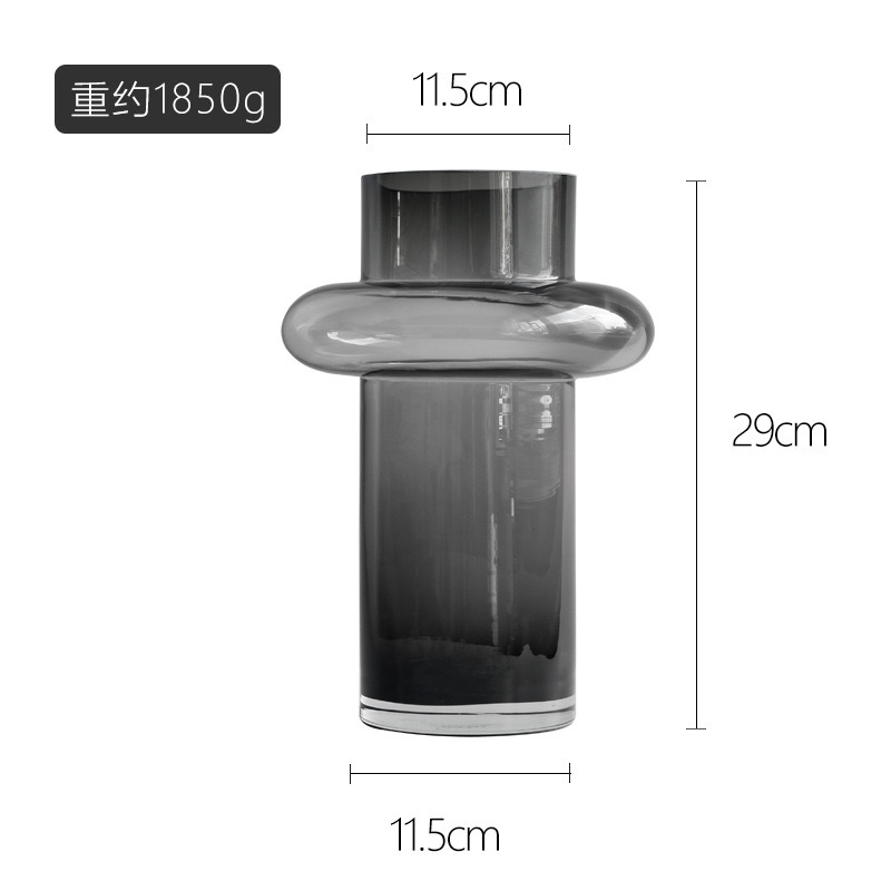 Florero de vidrio transparente ligeramente con tonalidad gris humo.
