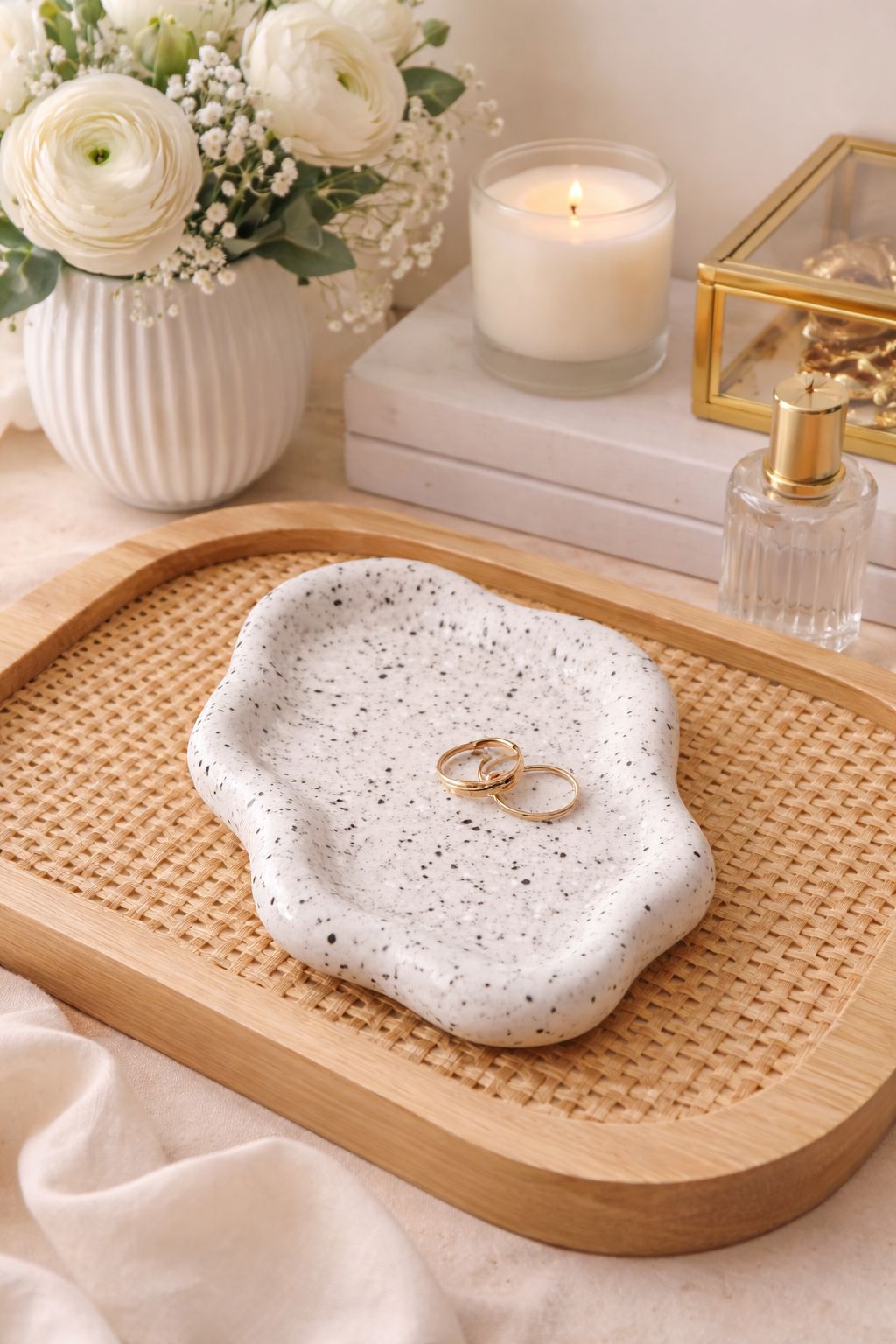 Linda bandejita de cerámica, ideal para esos espacios únicos, puedes colocar joyas, llaves, decoraciones y mas.